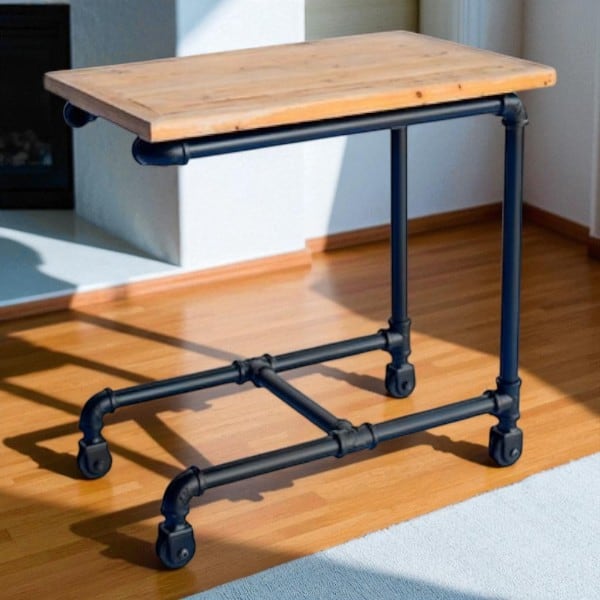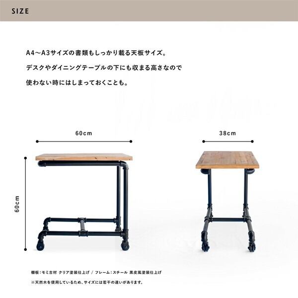 ■素材:天板:モミ古材クリア塗装仕上げ 脚:スチール黒皮風塗装