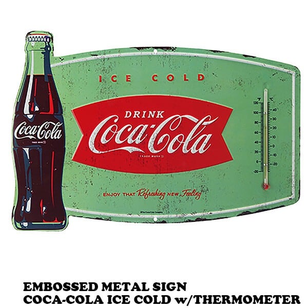 エンボス メタルサイン COCA-COLA ICE COLD w/THERMOMETER コカコーラ 温度計 看板 ブリキ看板 アメリカン雑貨