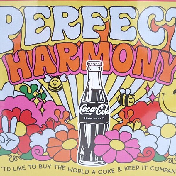 平和と調和をテーマにした70年代を感じさせるグラフィックで、平和、平等、多様性……「コカ・コーラ」の広告が伝えてきたメッセージが詰まった商品ですねっ