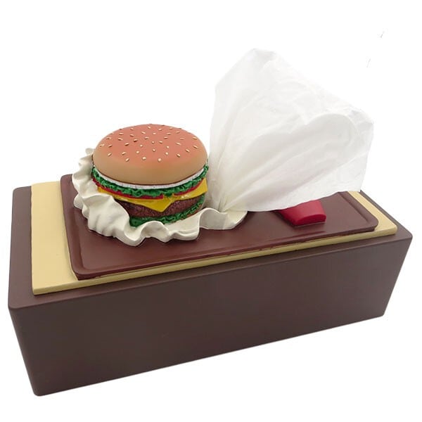 市販のティッシュボックスを後ろにセットするだけで、ハンバーガーからティッシュが出てくる。