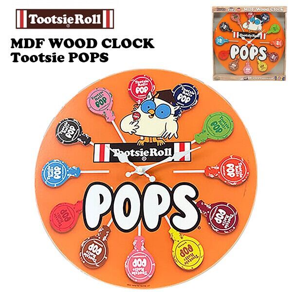MDF ウッドクロック Tootsie POPS トッツィーポップス 壁掛け時計 時計 企業 キャラクター 雑貨 インテリア アメリカン雑貨
