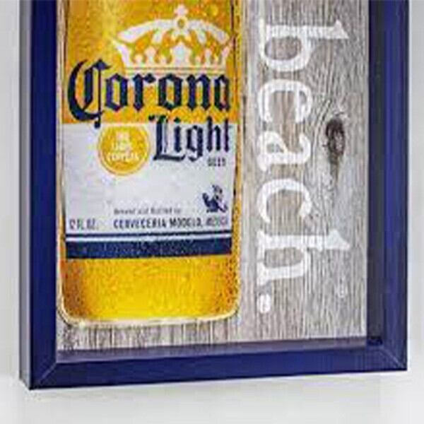 木製フレーム内にコロナビールのデザインがプリントされております。