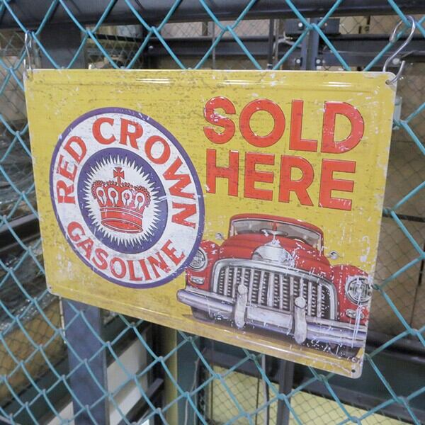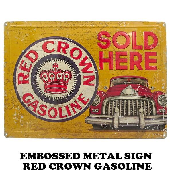 エンボス メタルサイン RED CROWN GASOLINE レッドクラウン ブリキ看板 ガソリン 企業 ロゴ 看板 装飾 雑貨 アメリカン雑貨