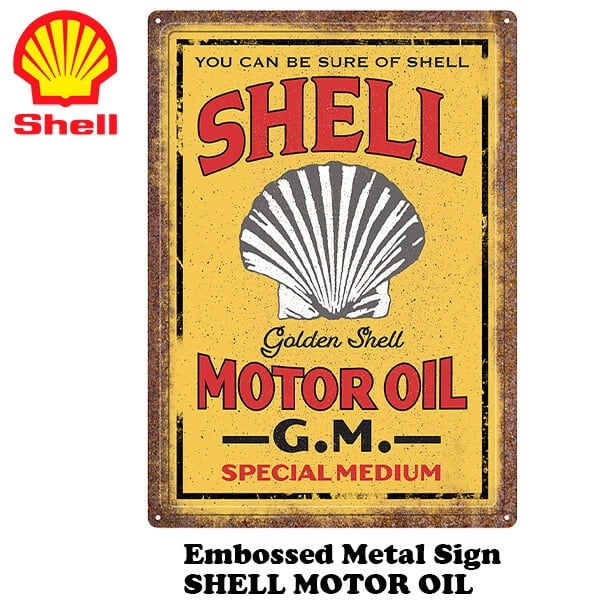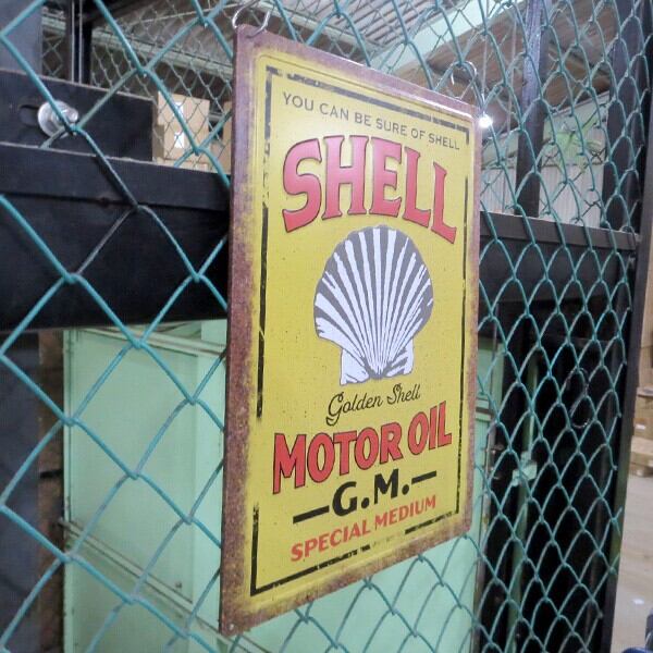 エンボス メタルサイン SHELL MOTOR OIL シェル ブリキ看板 企業 石油 看板 装飾 雑貨 ガレージ 飾り アメリカン雑貨