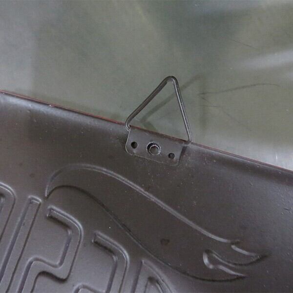 看板の上下部分に穴が開いているのと、フックする金具も付いていますので簡単にディスプレイできます。