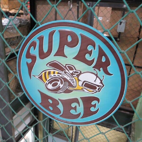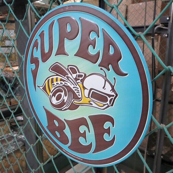 アメリカンなガレージシーンを演出するのに欠かせない【SUPERBEE】のラウンドメタル看板。