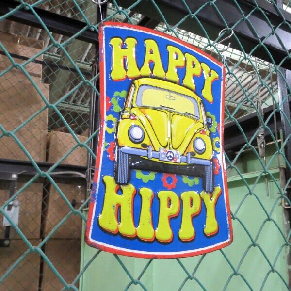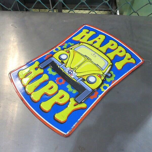 エンボス メタルサイン VOLKSWAGEN HAPPY HIPPY ワーゲン ブリキ看板 バス 車 ロゴ 看板 装飾 雑貨 アメリカン雑貨