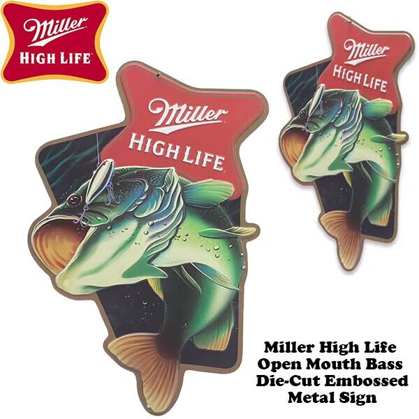 ダイカット エンボス メタルサイン MILLER HIGH LIFE BASS ミラービール 魚 バス ブリキ看板 ビール 企業 看板 アメリカン雑貨