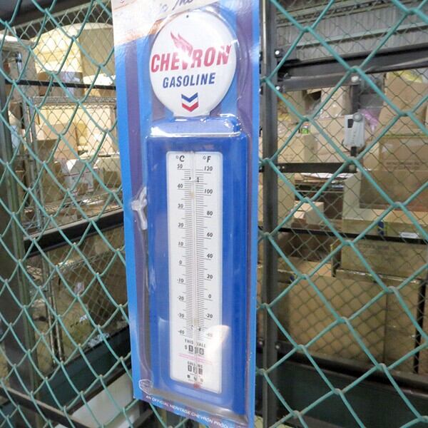 メタル サーモメーター CHEVRON GAS PUMP シェブロン 給油機型 温度計 ブリキ看板 石油 企業 ロゴ 雑貨 アメリカン雑貨