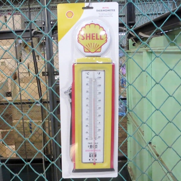 ガスポンプ型SHELLシェルの壁掛けタイプのアナログサーモメーター(温度計)です。