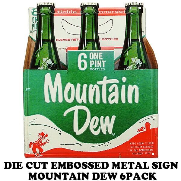 ダイカット エンボス メタルサイン MOUNTAIN DEW 6P PACK マウンテンデュー ブリキ看板 企業 ロゴ 看板 装飾 アメリカン雑貨