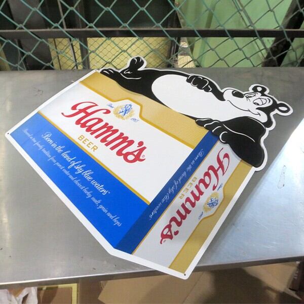 1865年にミネソタ州で最初に醸造されたHamm’s/ハムズは、アメリカの古典的なビールマスコットキャラクターのHamm'sBearは、テレビ制作やビールの印刷広告に使用されたビール業界で初のアニメーションキャラクターで、アドバタイジングキャラクターとして、人気・知名度ともに広告として大成功をおさめましたしかし、現在の親会社であるMillerBrewings社は、子供たちにビールを販売しようとしていると解釈されるかもしれないという懸念から、クマの使用を大幅に減らしたそうですよ〜看板は穴が開いていますので、ガレージやお部屋の壁にも簡単にディスプレイできますよ。