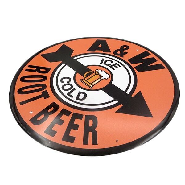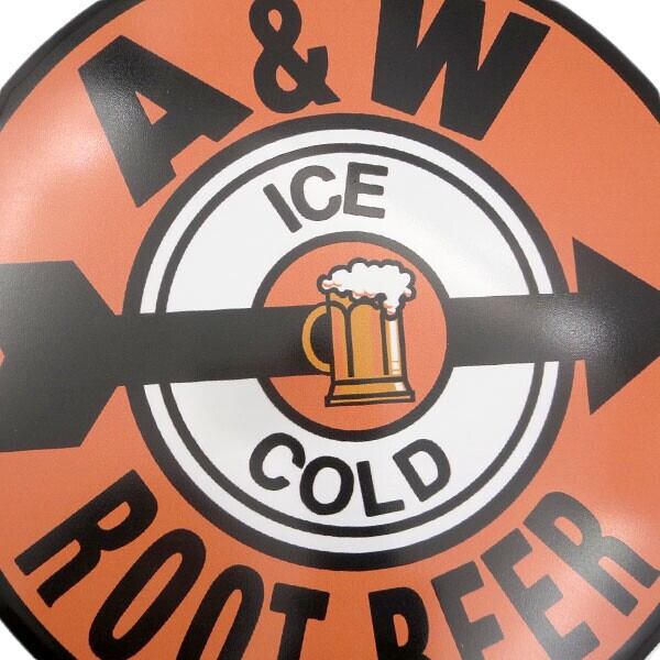 ラウンド メタルサイン A&W ROOTBEER エイアンドダブリュ ブリキ看板 ルートビア 看板 飲食店 什器 アメリカン雑貨