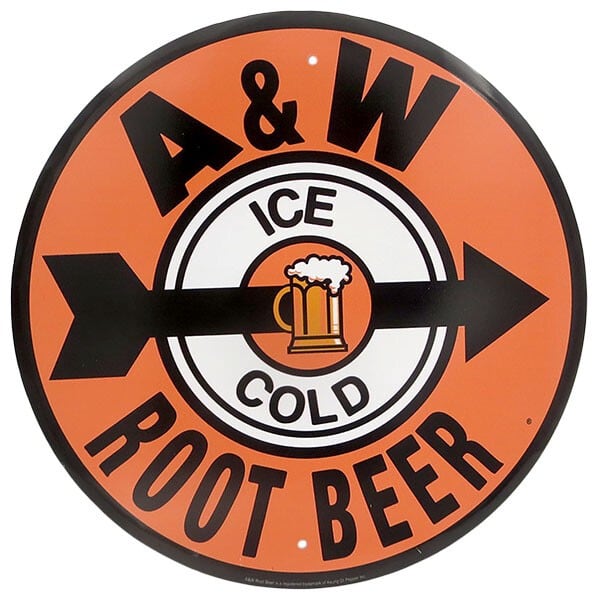 A&Wのブリキ看板A&Wのラウンドメタルサインです。