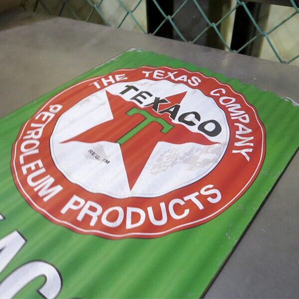 メタルのサインプレートガレージ・お部屋をカッコ良く演出TEXACOテキサコのコルゲートメタルサイン。