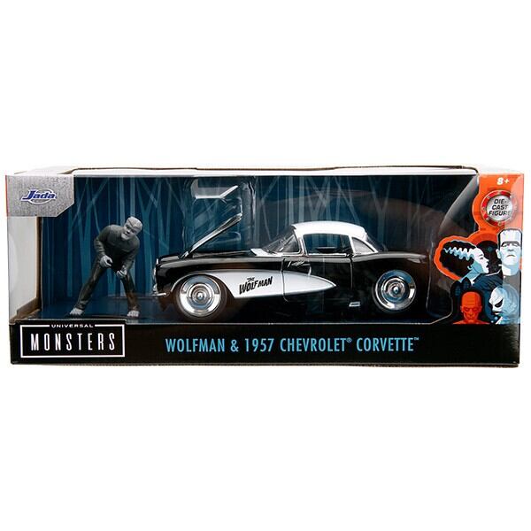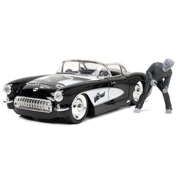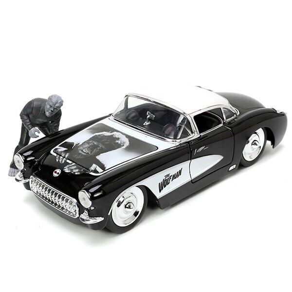 1:24 UNIVERSAL MONSTERS 1957 シボレー コルベット ウルフマン ミニカー 狼男 フィギュア 映画 車 アメリカン雑貨