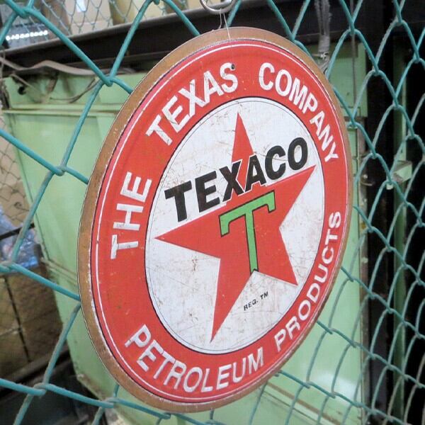 【TEXACO】の凹凸メタル看板石油メジャーのエクソン・モービル・テキサコ・シェブロン・ガルフ・BP・シェルは車好きだけでなく、アメ雑好きにも大好きなブランドですよね。
