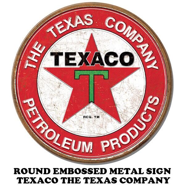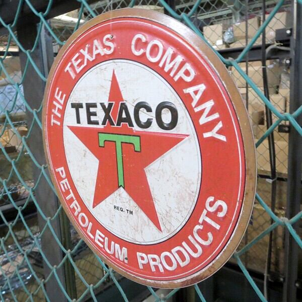 ラウンド エンボス メタルサイン THE TEXACO COMPANY テキサコ ブリキ看板 丸型 石油 企業 ロゴ 看板 装飾 アメリカン雑貨