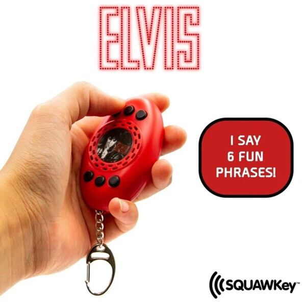キーチェーンのボタンを押すと「みなさんこんにちは、エルヴィスです」「リズム・アンド・ブルースを歌うと最高です」「ありがとう」といったエルヴィスの名言を含む、6つの有名で記憶に残るフレーズ。