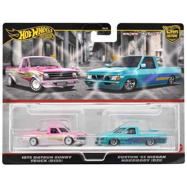 マテル社NISSANの代表的なピックアップトラックのサニートラックと、ハードボディことダットサントラックがセットになったプレミアム2パックセットミニカーです。