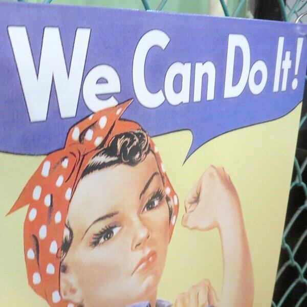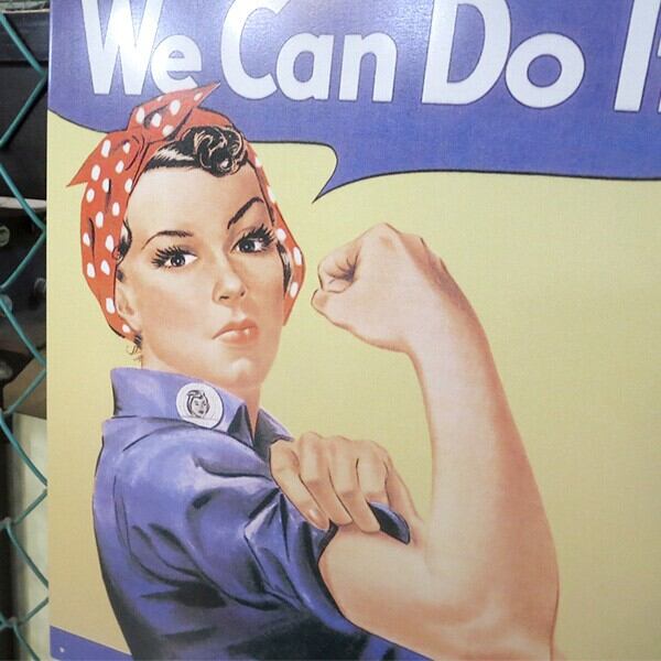 戦時中のアメリカでプロパガンダに使われたポスター・イメージ"WeCanDoIt"でお馴染みの工場や造船所で働く女性アイコン的存在「ロージー・ザ・リベッター」の看板。