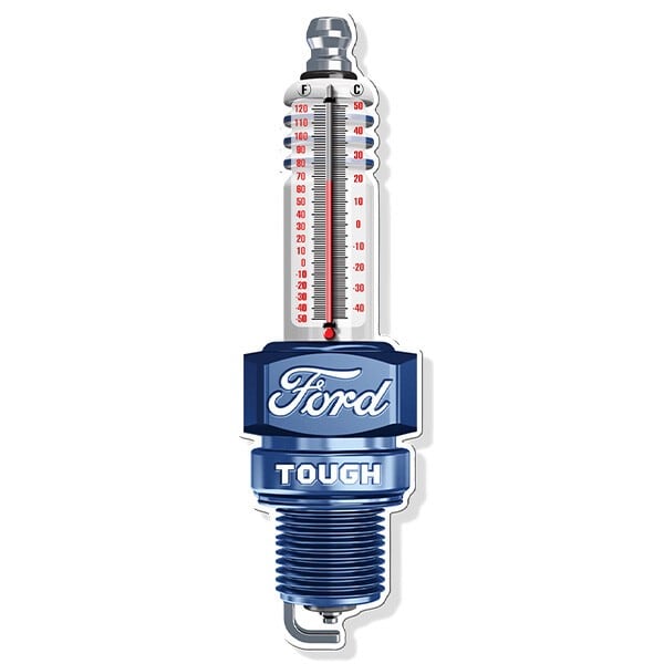 プラグ型の凹凸フォードサーモメーターダイカット&エンボス加工のFordプラグメタルサイン温度計付き看板です。