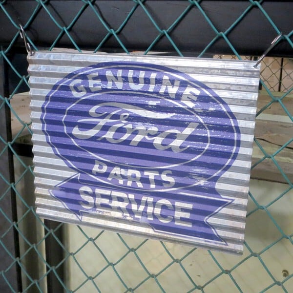 とたん板のようなナミナミの形状と材質の、コルゲートメタルサインFORDGENUINEPARTS!