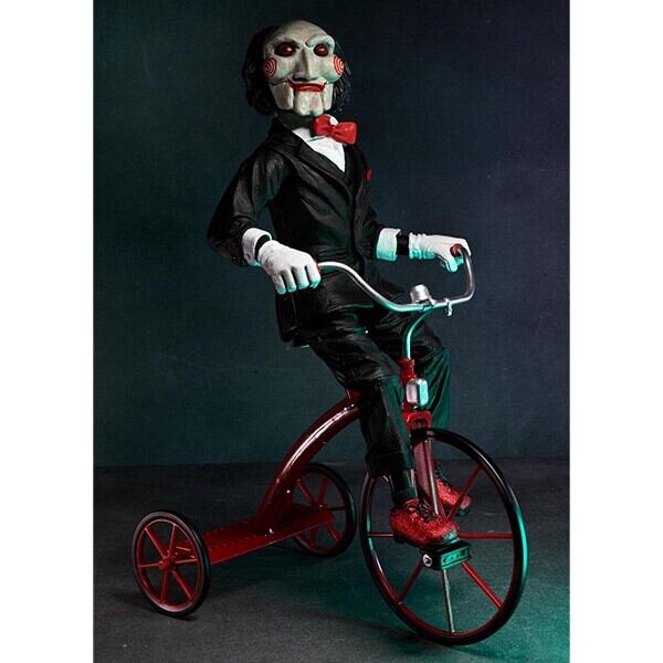 殺人鬼ジグソウになる前のジョンが、生まれて来る子供に与えるはずだったビリー人形は、三輪車をキコキコ漕ぎながら近づいてくるビリーの姿をリアルに再現。
